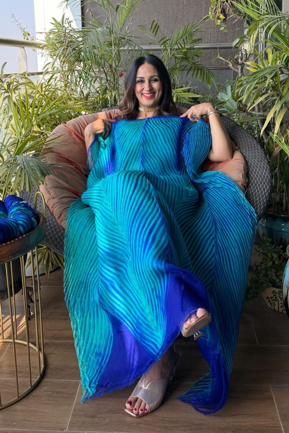 *Presenting pure organza kurtas in elegant Arashi Hand Shibori dye, 2.5 metres each*