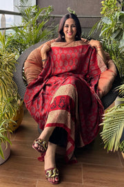 Handblocked Gorgeous AJRAKH kurta fabric on Pure Modal Satin 2.5 mtr
