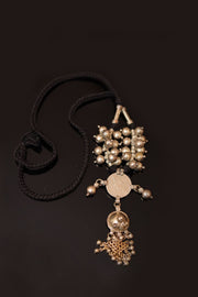 Designed using traditional techniques, this unique feature highlights the threadwork and intricate brass detailing. Lightweight, adjustable, and versatile—perfect for everyday elegance or festive styling.