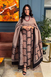 Good-quality Ajrakh hand block printed crushed linen silk kurta material, paired with a stunning crushed pure linen silk dupatta.