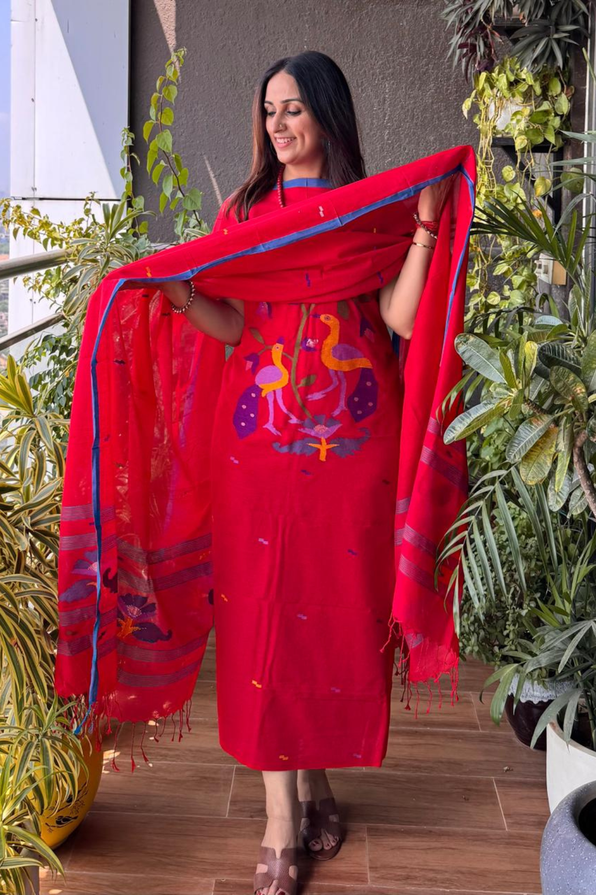*Presenting to you handspun Jamdani kurta dupatta sets on pure cotton.
