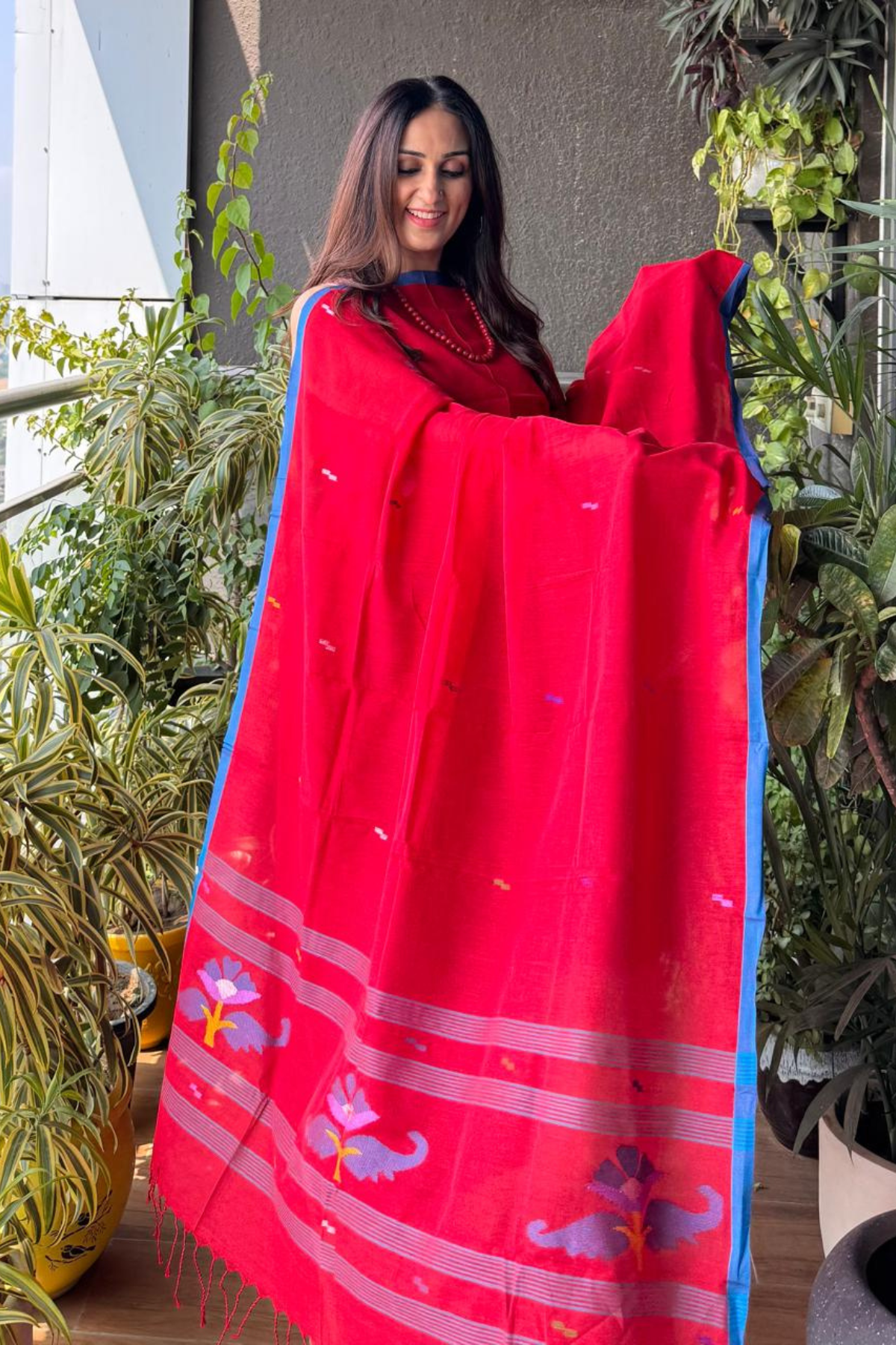 Jamdani weave teamed with beautiful Jamdani weave dupatta completed with tassels.