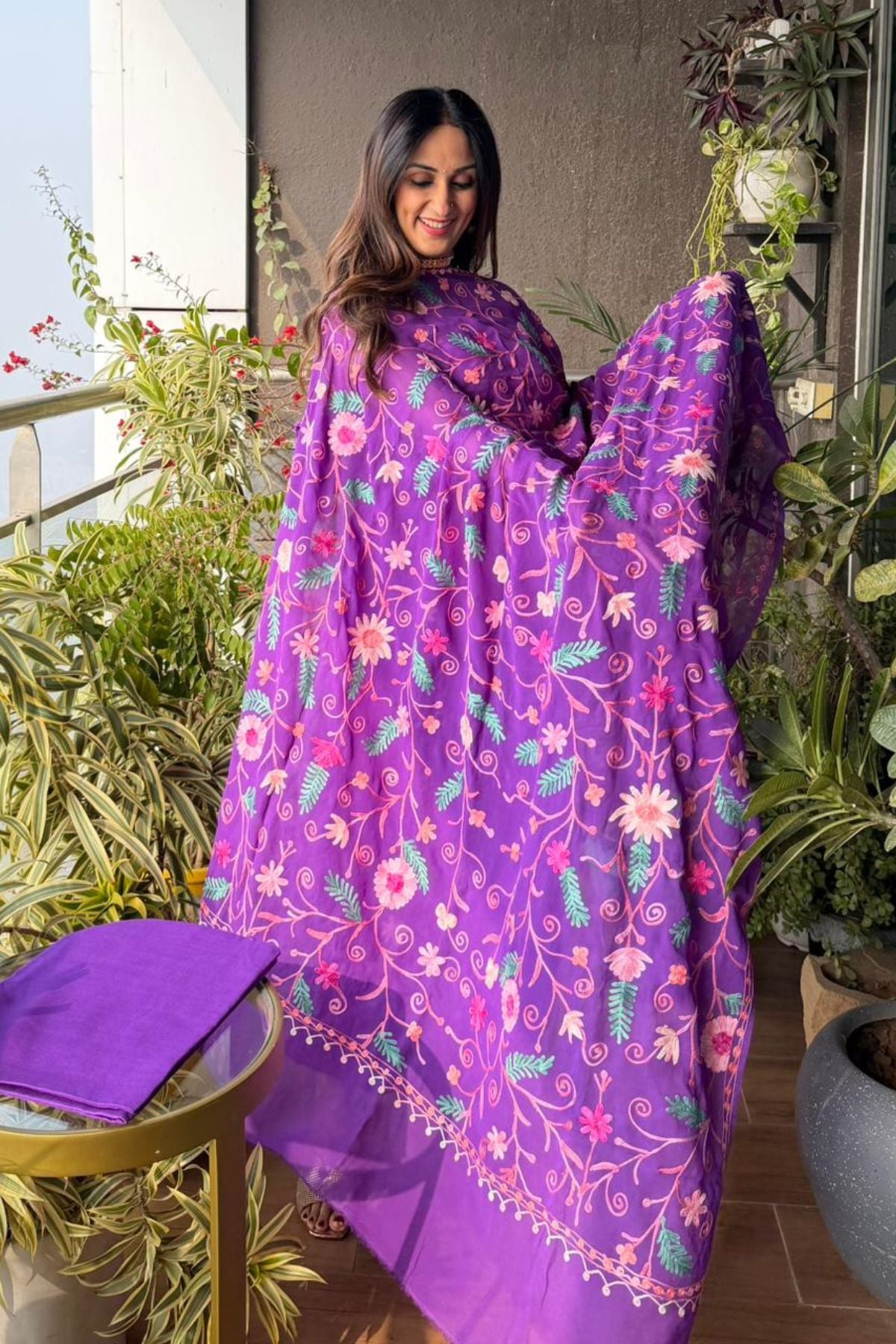 Kashmiri embroidery Jaal dupatta full sets on georgette fabric