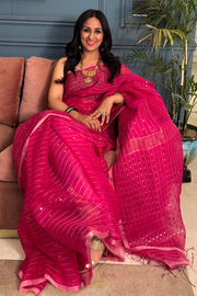 These sarees feature intricate handwoven sequins all over and are super lightweight, making them easy to drape and effortlessly graceful.