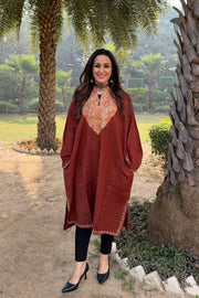 A-stunning piece that combines traditional craftsmanship with modern style. This exquisite pheran is crafted from super fine wool, ensuring warmth and comfort during chilly days while maintaining a lightweight feel