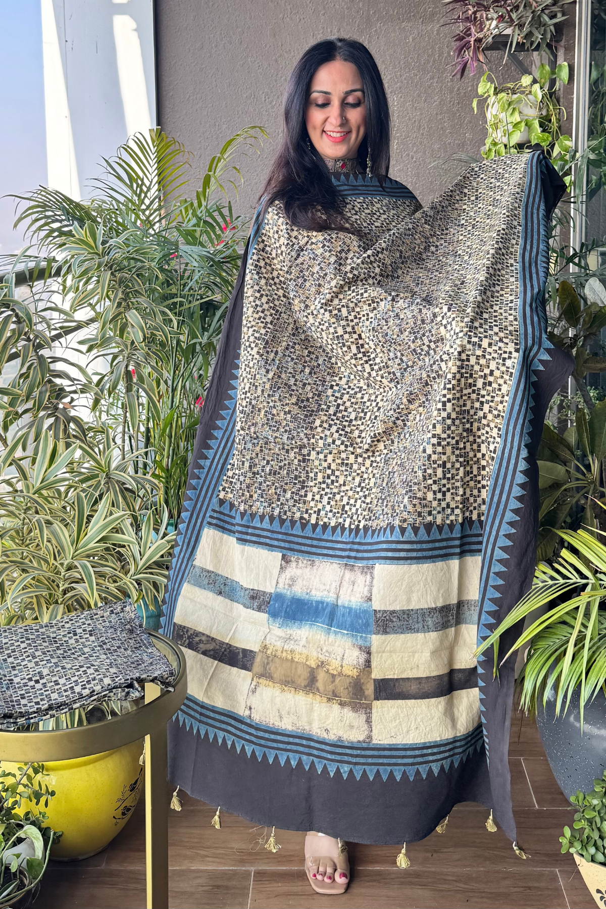 All Ajrakh products are completely hand-dyed and hand block printed over 15–20 days. Slight discolouration and pigment variations are natural characteristics of the fabric and not defects.