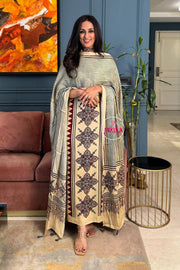 Stunning Handblocked AJRAKH design on pure Modal Satin shirt fabric teamed with stunning modal Satin dupatta with lovely tassels **
